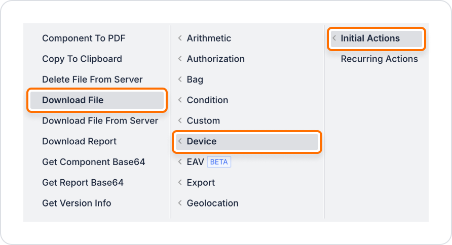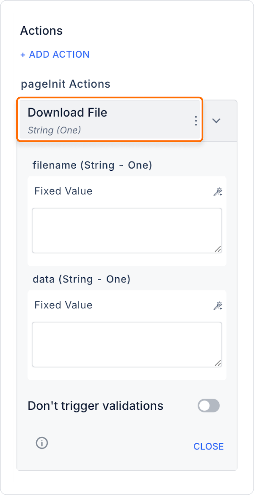 - Select the button and set the appropriate trigger (OnClick, etc.) from the + ADD ACTION menu.