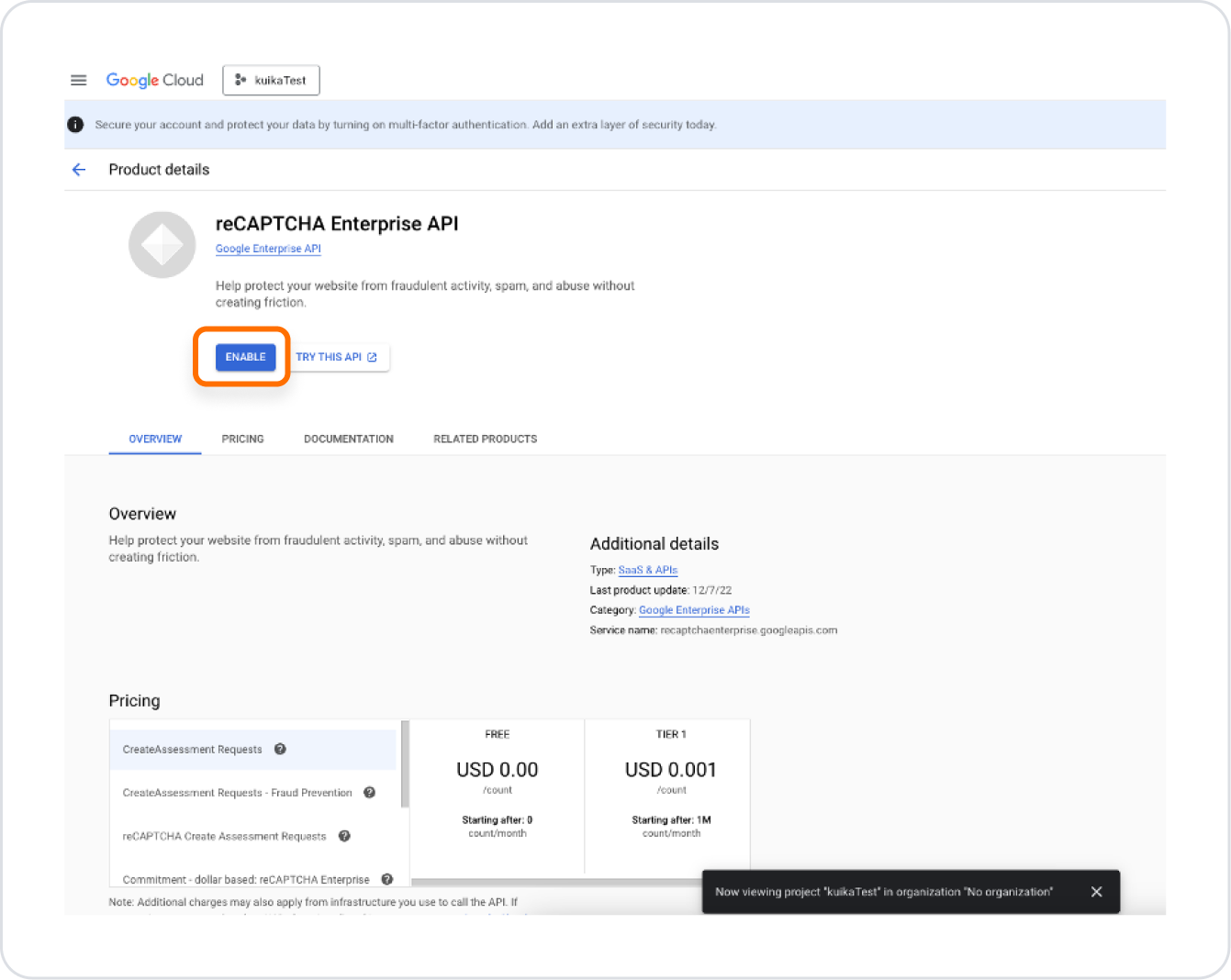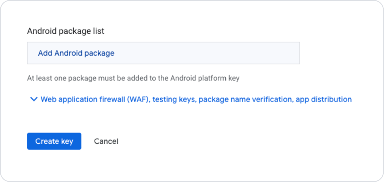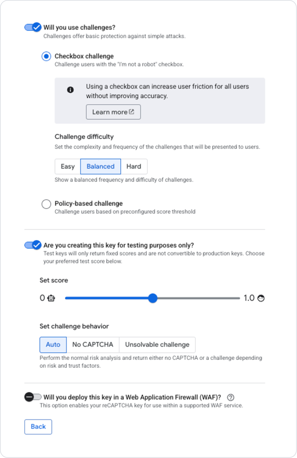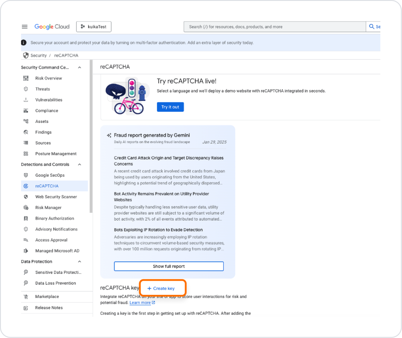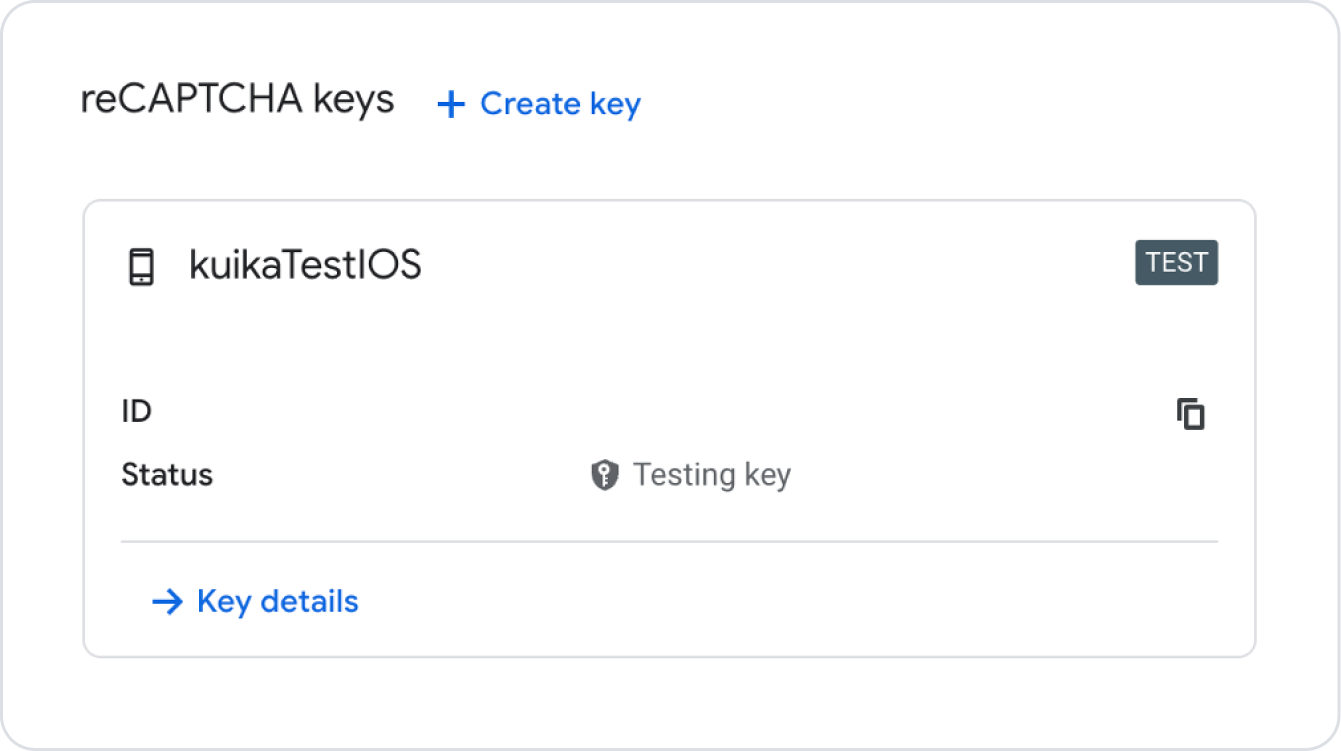 Click the Create Key button in the area where the keys are listed on the ReCaptcha page.