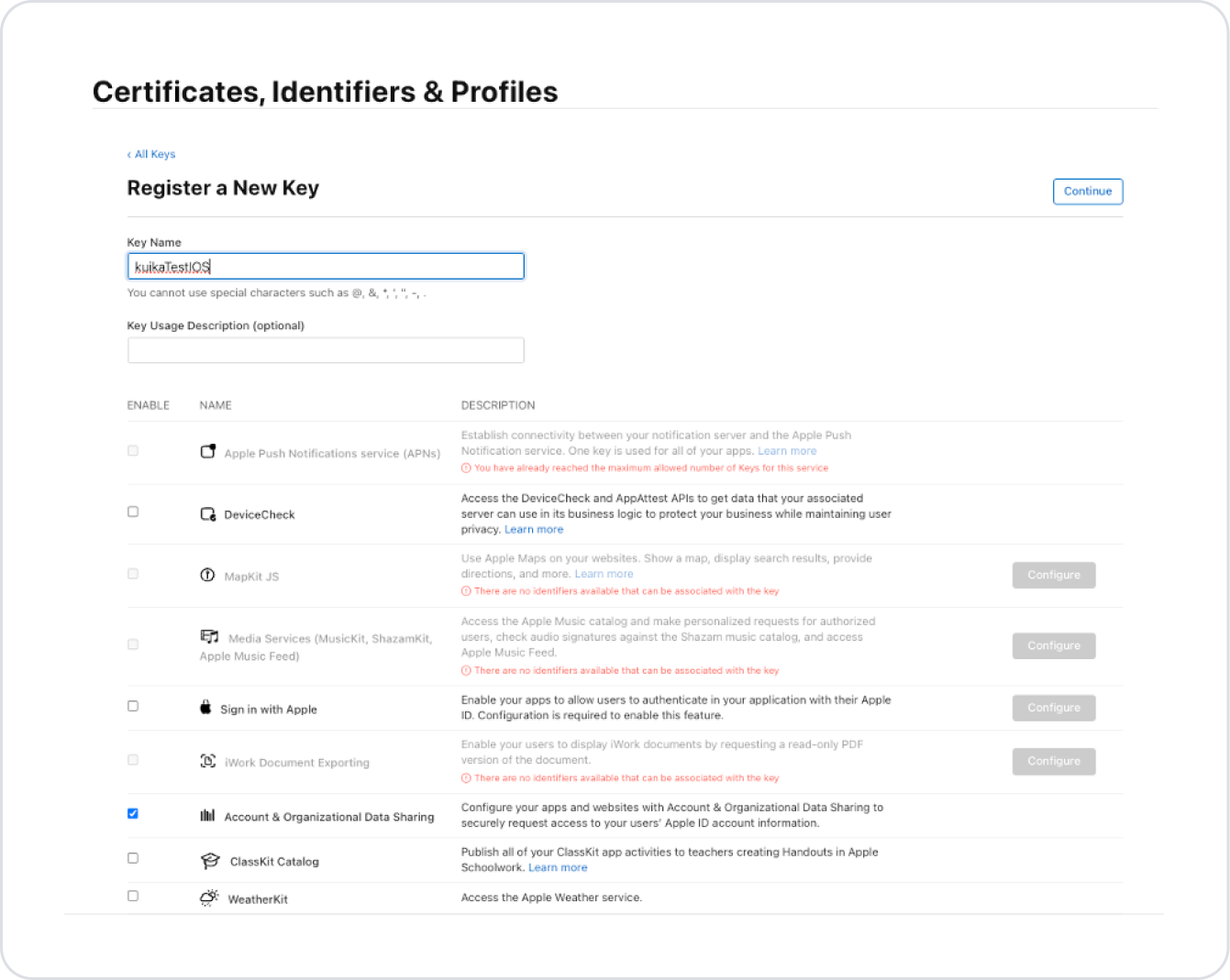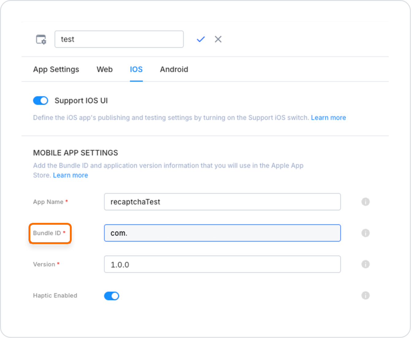 In the field that opens, enter the Bundle ID information found in the Configuration Manager → iOS tab of the project you created on the Kuika platform.