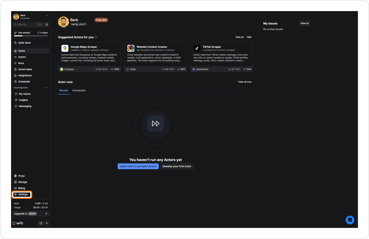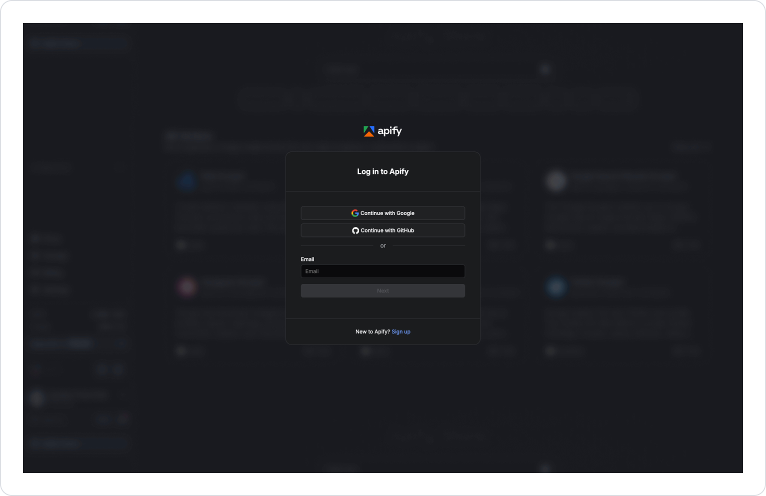 - Apify Console sayfasına gidin: https://console.apify.com/