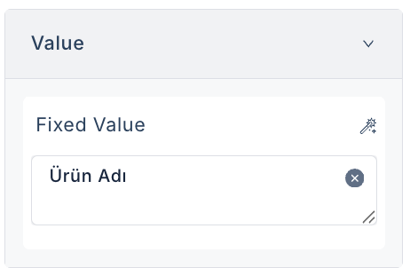 Tanımlama sonrası Value alanının altında oluşan Design Placeholder alanına “Ürün Adı” eklemesini yapın.