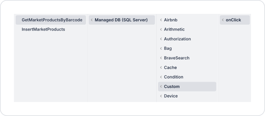 SQL Action, barkoda karşılık gelen ürünü döner.