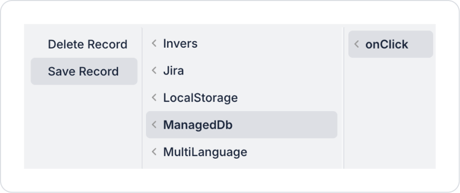 Button’a kayıt aksiyonunu ekleyin. Button > Properties > Add Action > onClick > Managed Db > Save Record aksiyonunu ekleyin.