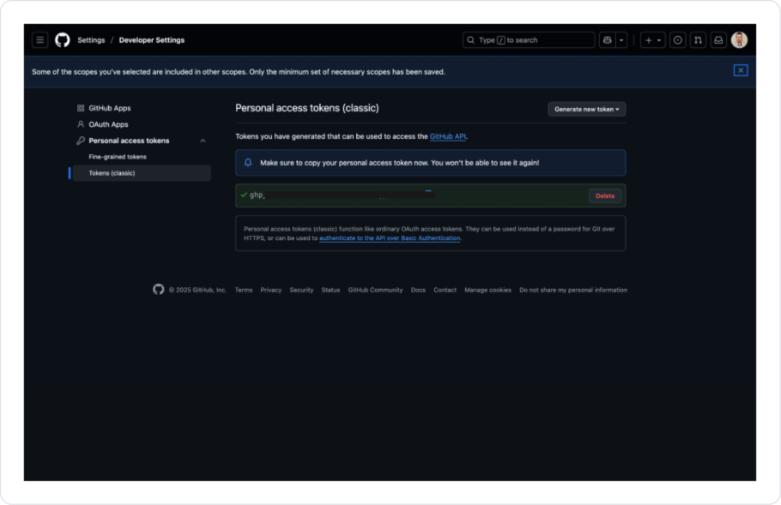 GitHub hesabınıza giriş yapın (https://github.com ). Sağ üstten Settings → Developer Settings → Personal Access Tokens → Tokens (classic) yolunu izleyin. Generate new token → Generate new token (classic) seçeneğini tıklayın. Gerekli alanları doldurun: Note: Token için açıklama girin (örn: MCP Server Access ).Expiration: Süre seçin (30 gün, 90 gün veya No expiration ).Scopes (izinler): repo → Depolara erişim read:org → Organizasyon bilgileri workflow → İş akışları admin:repo_hook → Webhook yönetimi Generate token butonuna tıklayın.Token sadece bir kez görüntülenir → Copy ile kopyalayın ve Kuika’daki GitHub Settings alanına yapıştırın. Action Türleri GitHub Commit List