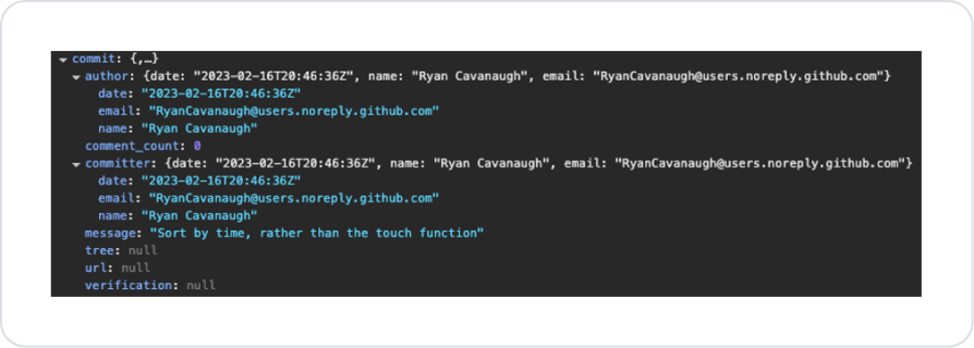 Commit arama sonucunda aşağıdaki alanlar döner: