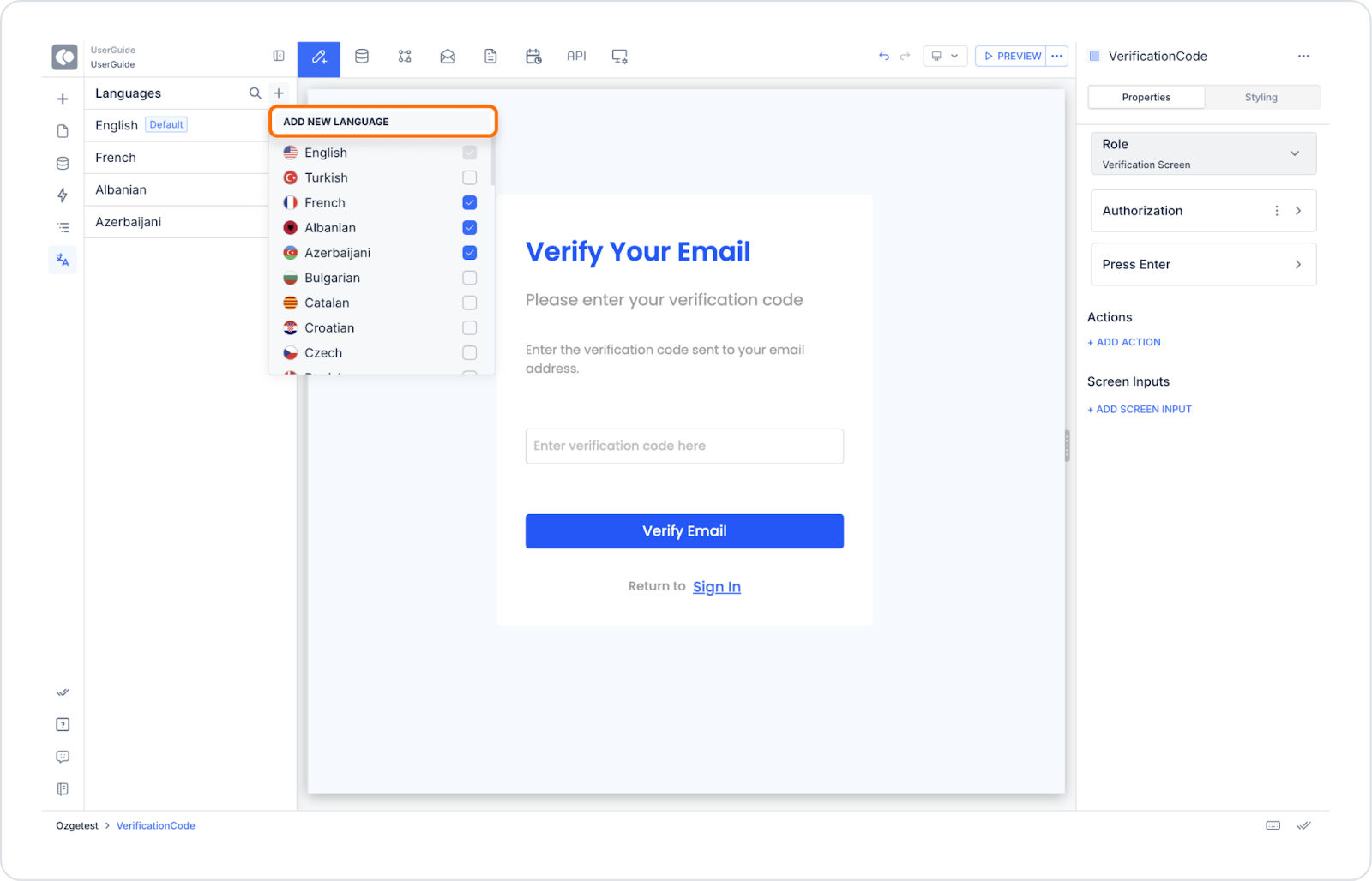 Açılan New Language penceresinde eklemek istediğiniz dili seçin ve isimlendirin.