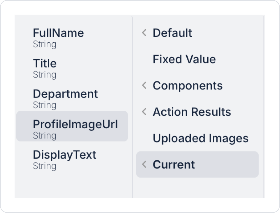 Image elementinde Image > Properties > Value > Action Results > GetEtmployeeDetail > First > ProfileImageUrl tanımlamasını yapın.