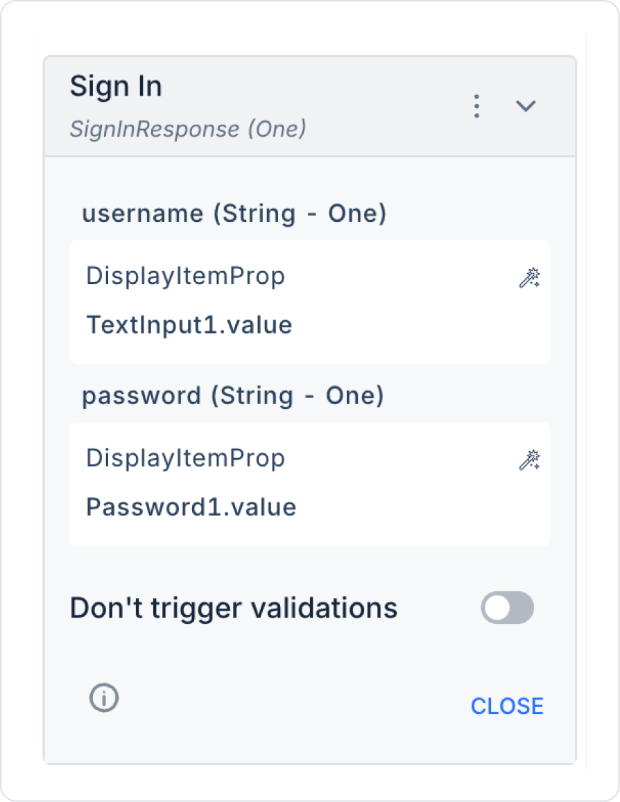 Sign Inaksiyonu içerisindeki username alanına Components > TextInput > value tanımlamasını yapın.