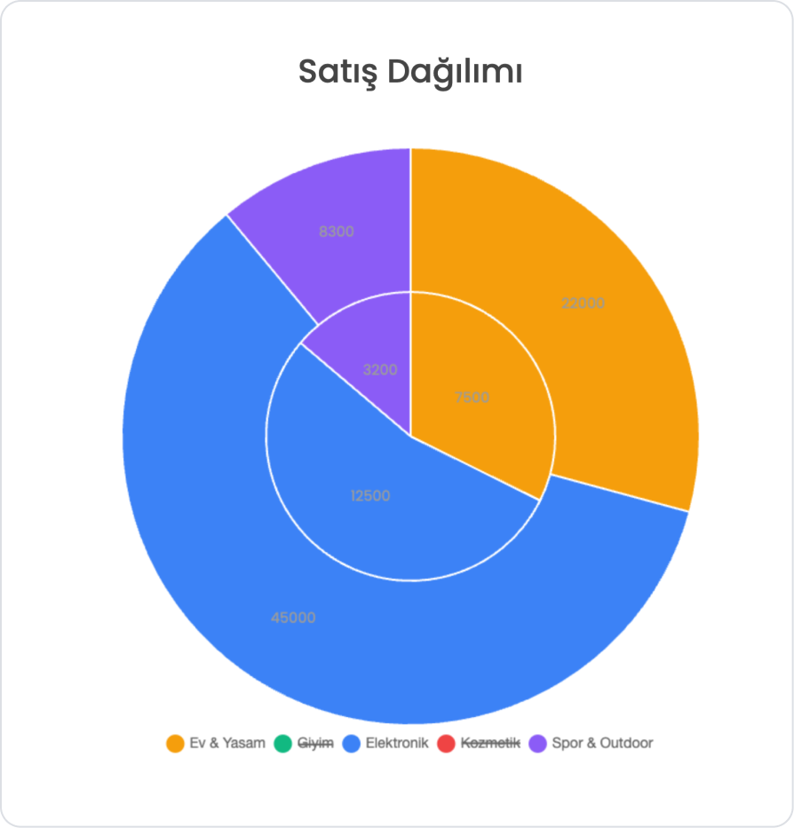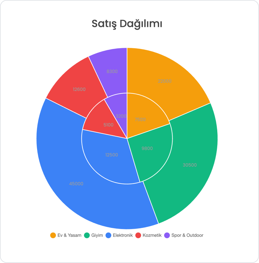 Dilim büyüklüklerinin otomatik olarak yüzde hesaplamasına göre çizilmesi. Kullanıcılar oranları hızlı şekilde yorumlayabilir.