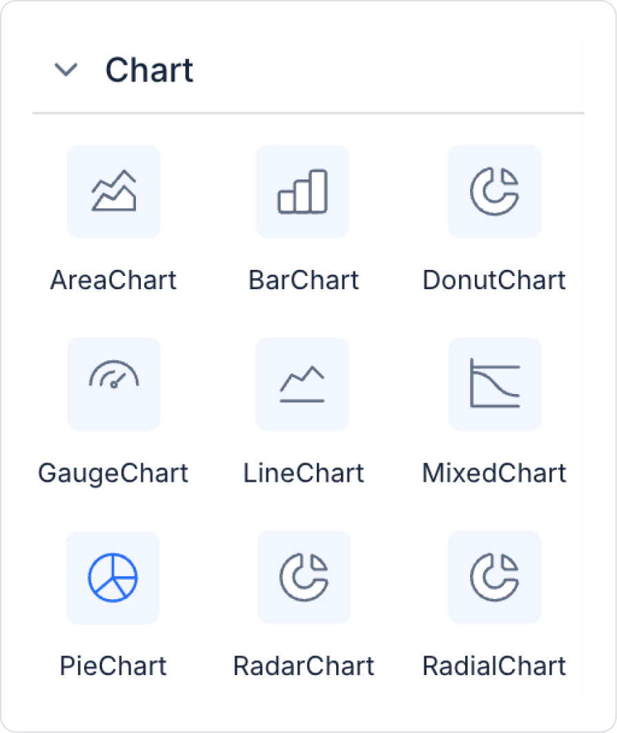 Pie Chart elementi, kategorik verileri dairesel bir yapı içinde dilimler halinde göstererek her bir kategorinin toplam içindeki oranını görsel olarak analiz etmenizi sağlar. Her dilimin büyüklüğü, temsil ettiği verinin ağırlığını gösterir ve bu sayede pazar payı, bütçe dağılımı veya yüzdesel veri kıyaslamaları gibi senaryolarda etkili bir görselleştirme sunar. Pie Chart, kullanıcıların veri dağılımını hızlı şekilde anlamasını sağlar ve özellikle sade, özet analizlerde tercih edilir.
