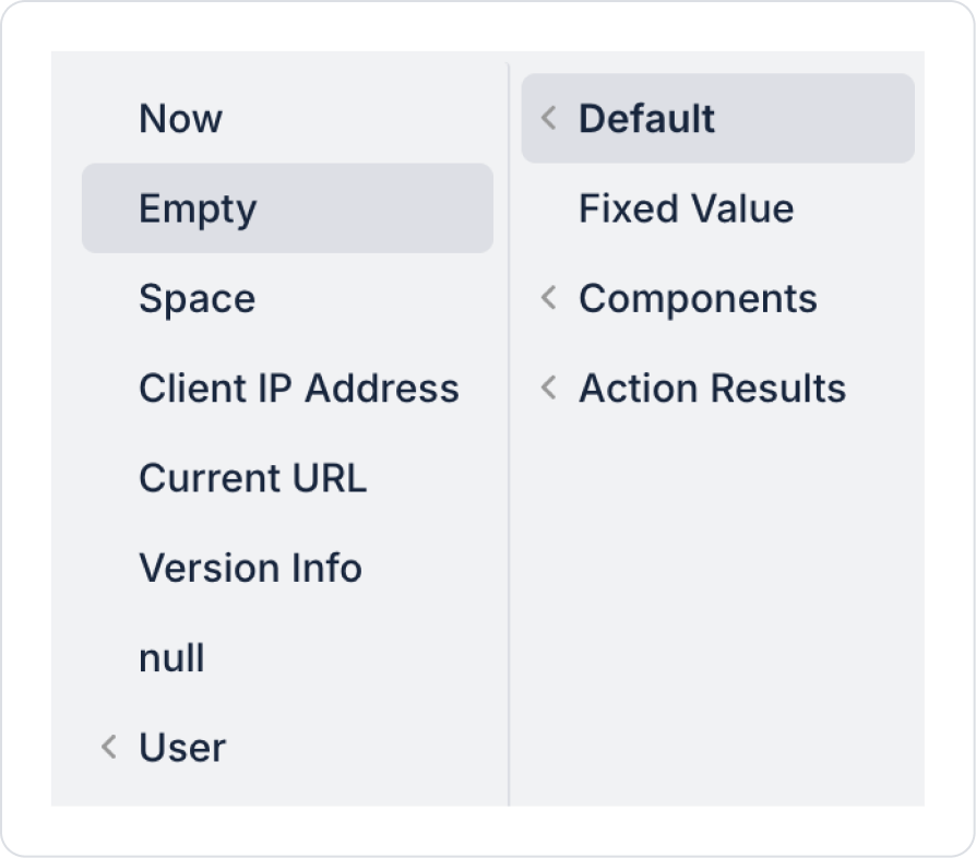 Dinamik bir değer kullanmak isterseniz Symbol Picker üzerinden SQL sorgusu, API yanıtı, kullanıcı girişi veya başka bir UI elementinden gelen değeri bağlayabilirsiniz.