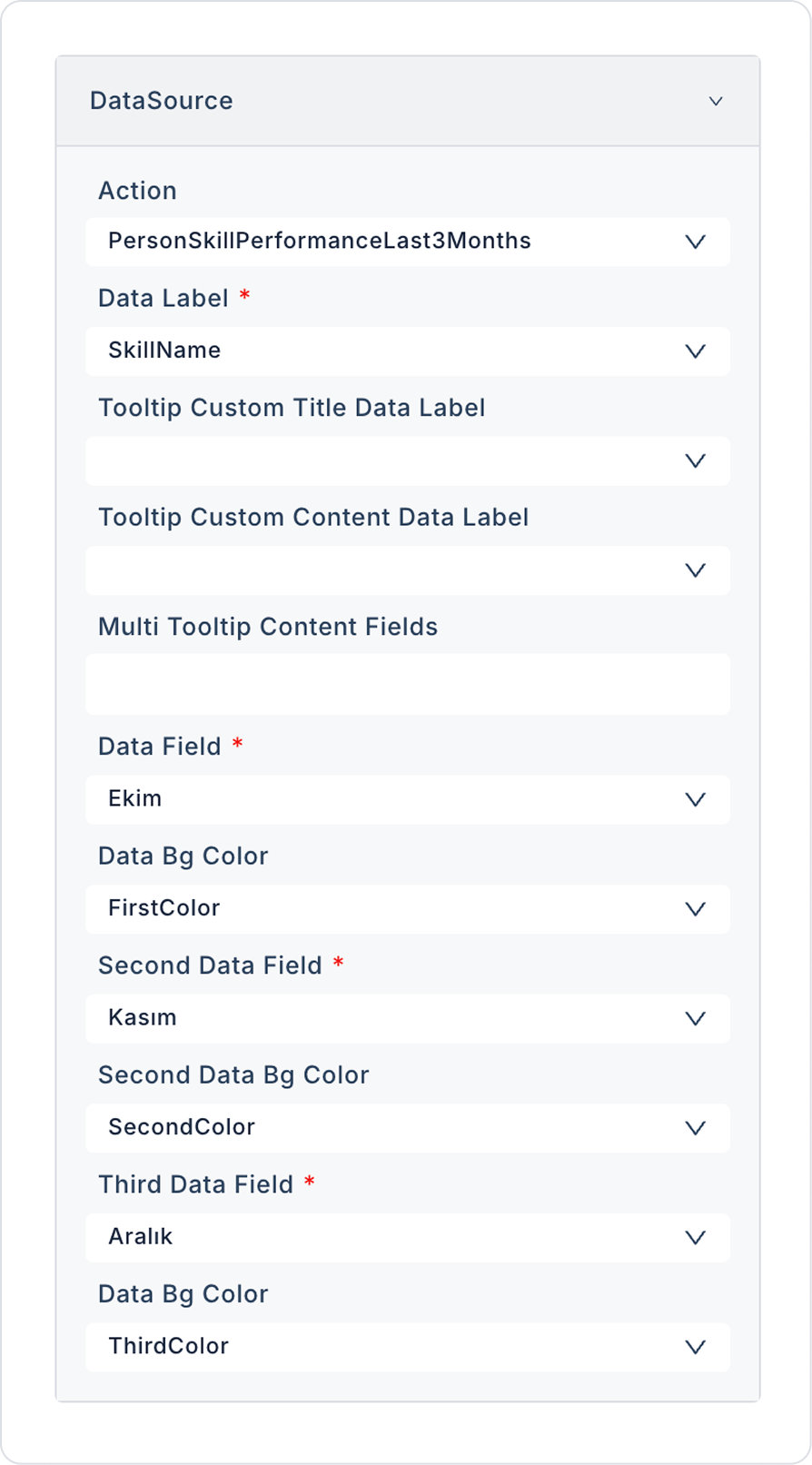 Tooltip Custom Content Data Label: Tooltip içerisinde açıklayıcı içerik veya ek bilgi göstermek için kullanılan veri alanıdır.