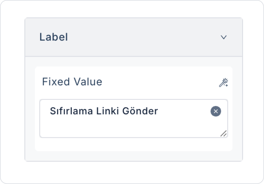 Sayfadaki Button elementine tıklayın Button > Properties > Label alanına ‘Sıfırlama Linki Gönder’ yazısını ekleyin.