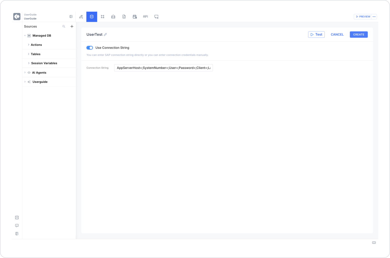 Bu adımları takip ederek, SAP veri kaynağınızı Kuika uygulamalarınıza entegre edebilirsiniz. Bağlantıyı ister Connection String yöntemiyle ister manuel alanlarla tanımlayabilir, ihtiyacınıza uygun şekilde özelleştirebilirsiniz.