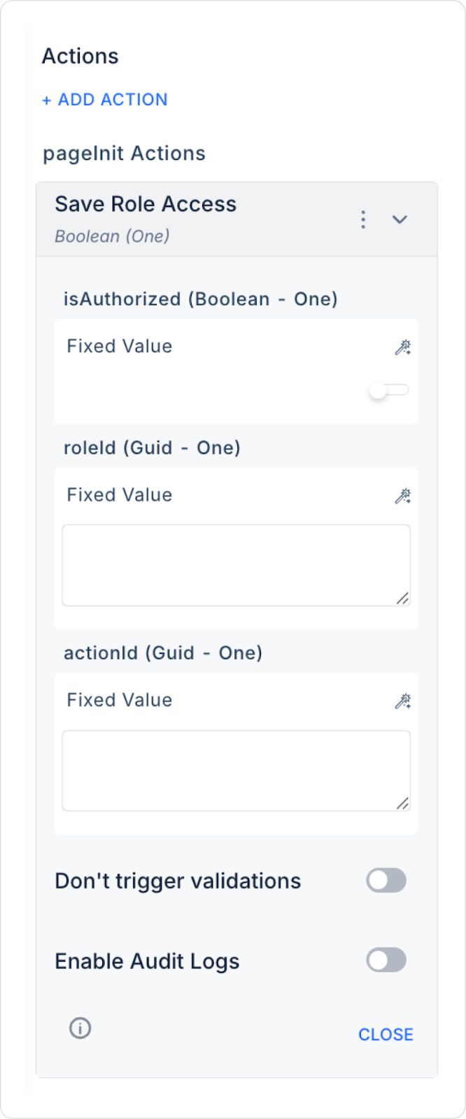 Save Role Access aksiyonu, Kuika platformunda bir role ait erişim yetkilerini kaydetmek veya güncellemek için kullanılır. Yetkilendirme yönetiminin temel bir parçası olan bu aksiyon, sistem güvenliği ve erişim kontrolünün sürdürülebilir şekilde yönetilmesini sağlar.
