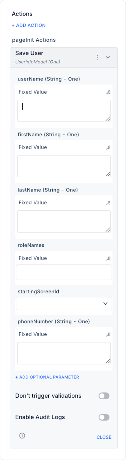 Save User aksiyonu, kullanıcı yönetimini kolaylaştırır ve uygulama içindeki erişim kontrollerini etkin bir şekilde yapılandırmanızı sağlar. Yeni kullanıcı kayıtları, rol atamaları ve ekran yönlendirmeleri tek bir yapılandırmayla entegre edilebilir. Özelleştirilebilir güvenlik ve bildirim seçenekleri ile esnek ve güvenli bir kullanıcı yönetimi altyapısı sunar.