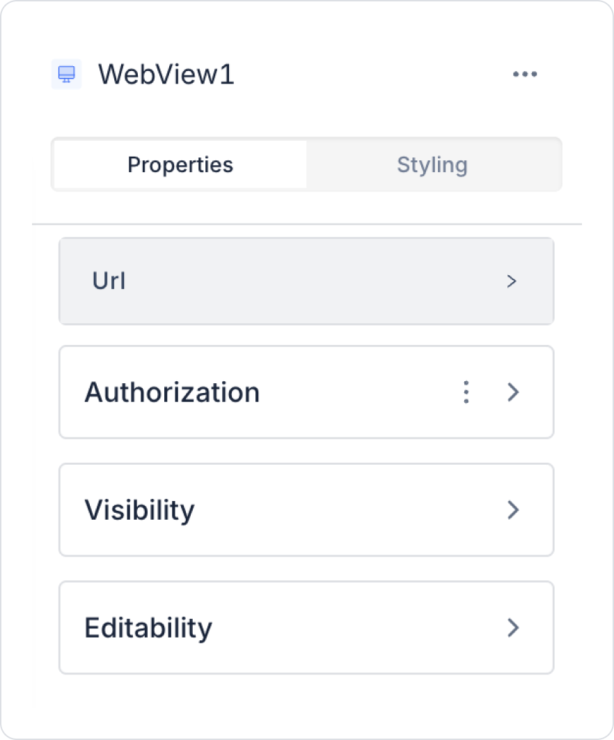 Web View elementinin özelliklerini, sağ kenardaki Properties panelinden yapılandırabilirsiniz.